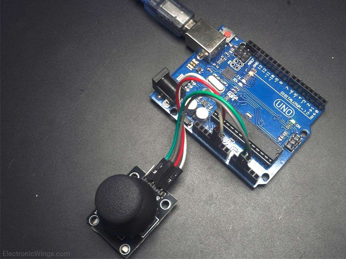 Here, we will be using the analog pins of Arduino to process the analog voltages of the joystick.