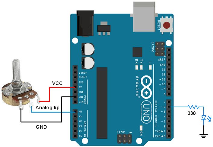 Control LED Brightness using a Potentiometer