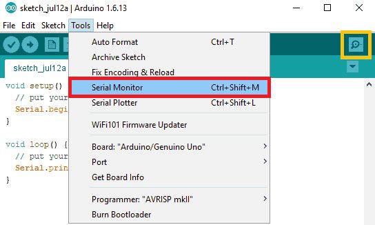 One can also access serial monitor by clicking on icon present on top-right corner of Arduino IDE shown in above image.