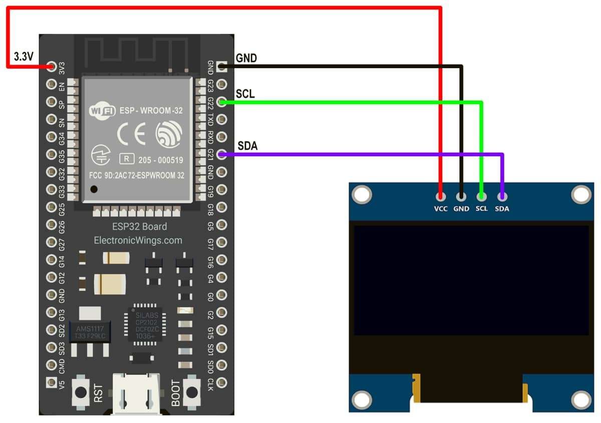 128x64 OLED Display Hardware Connection with ESP32