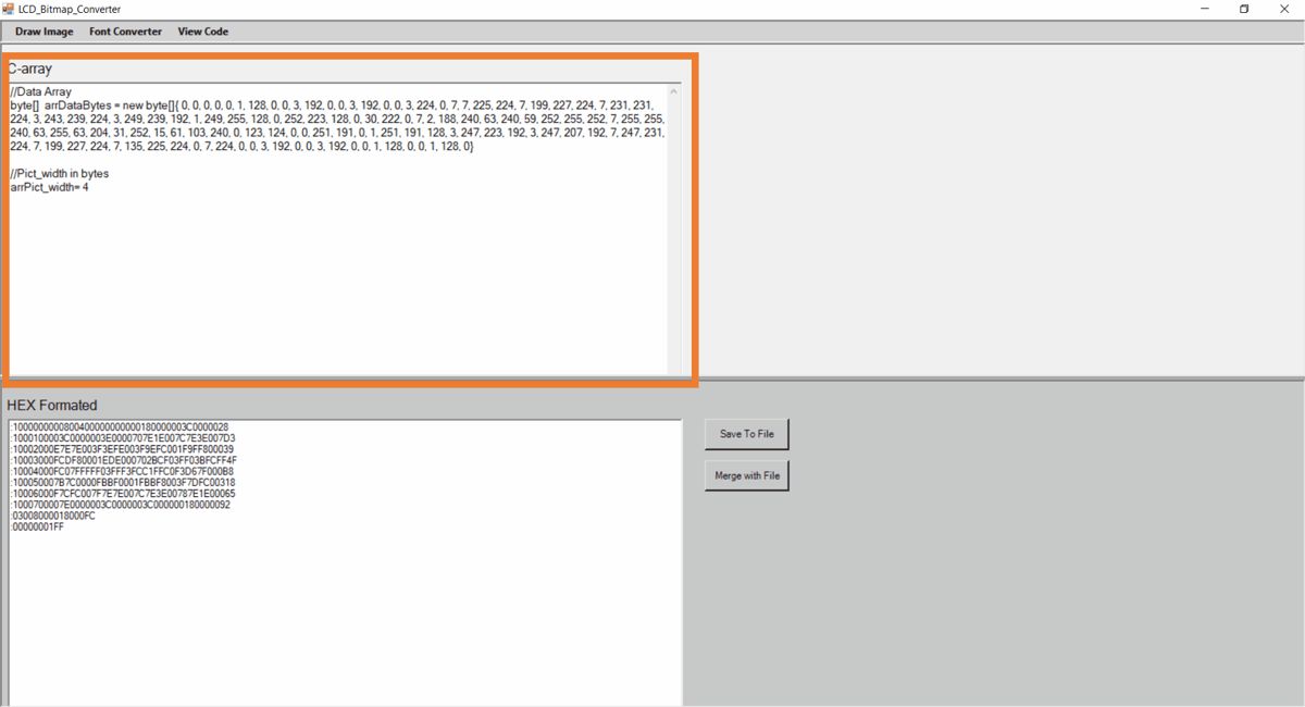 Here we have used the LCD Bitmap Converter application