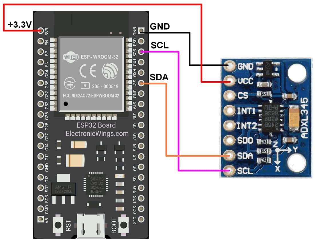 ADXL345 Hardware Connection with ESP32