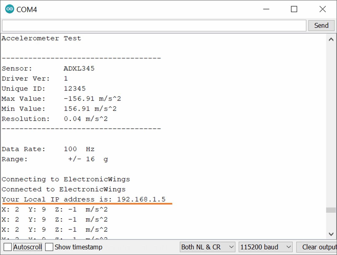 - If all are ok, then the web page will start the showing current acceleration on the web server like in the below image.