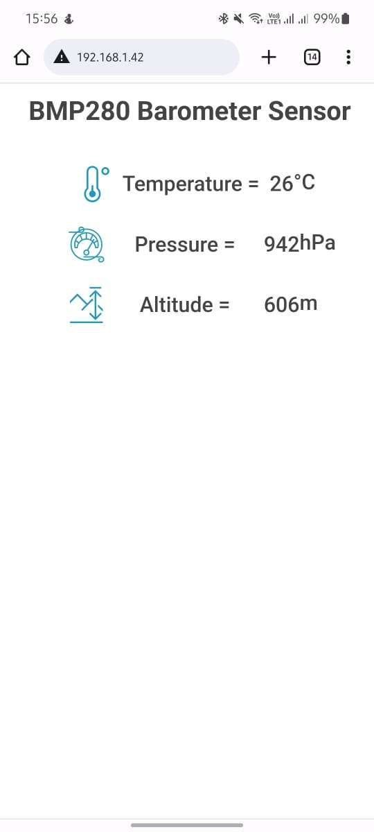 Now, on the other hand, using the function using function bmp280(), we send the updated values of temperature, pressure, and altitude to the webpage.
