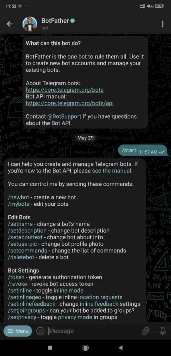 Open telegram and find BotFather
