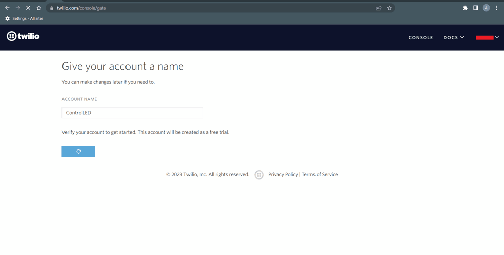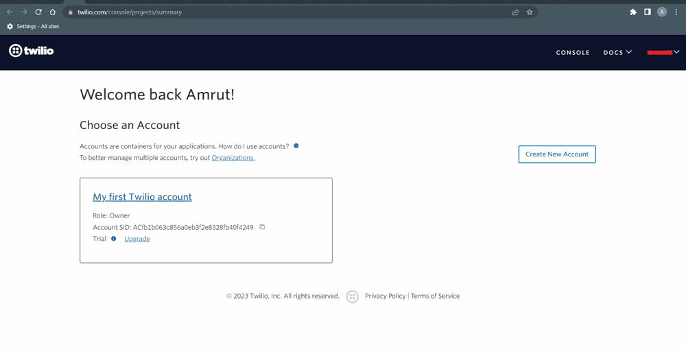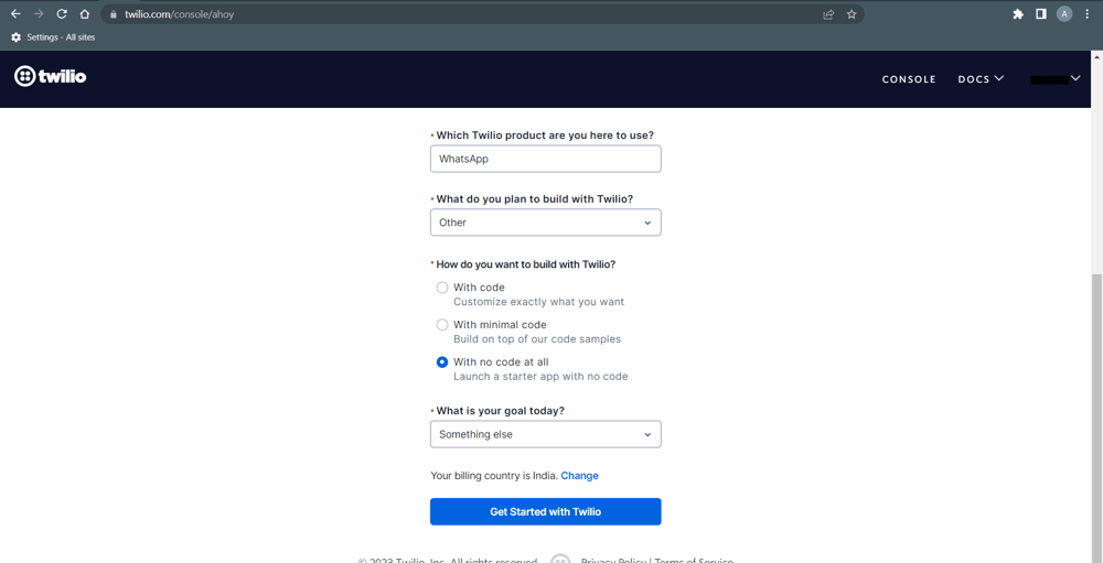 Now do the seetings as sown below and click on Get Started with Twillo