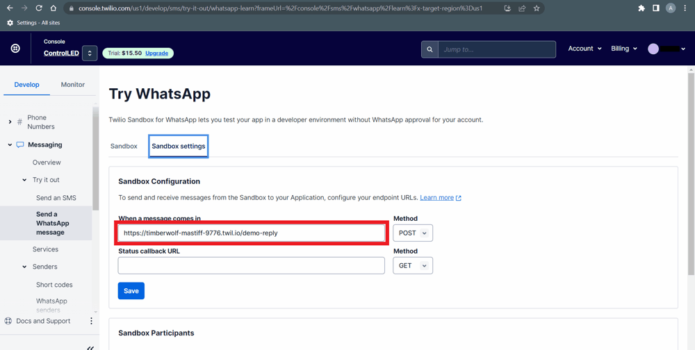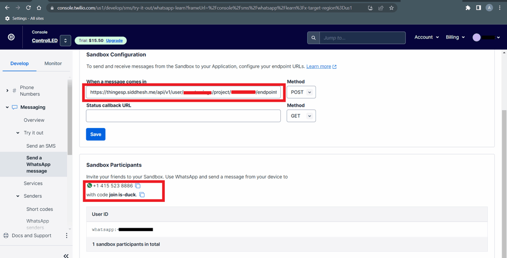 Control the LED using WhatsApp message
