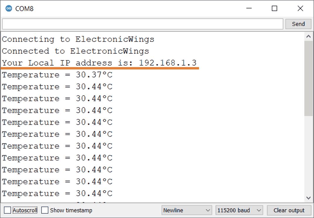 Serial.println(WiFi.localIP()); /*Print the Local IP*/