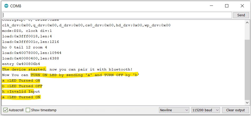 - The code will start executing and Turns ON the ESP32 Bluetooth Stack.