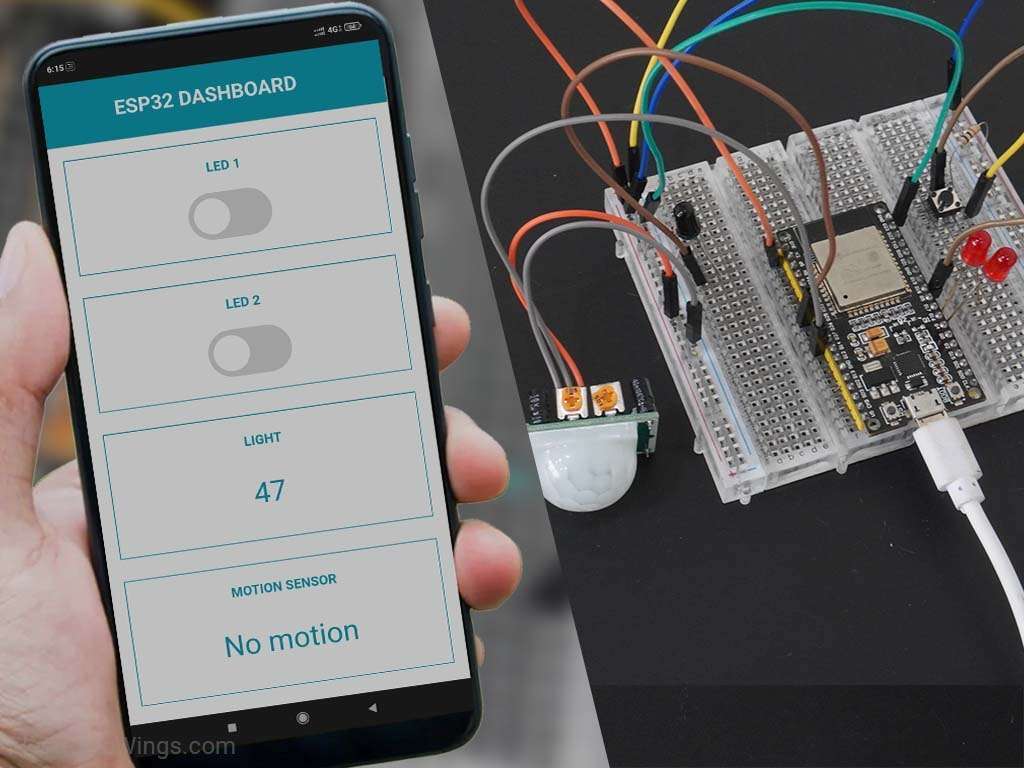 - The dashboard allows you to control the two LEDs, monitor the light intensity using an LDR (Light Dependent Resistor), and detect motion using a PIR (Passive Infrared) sensor.