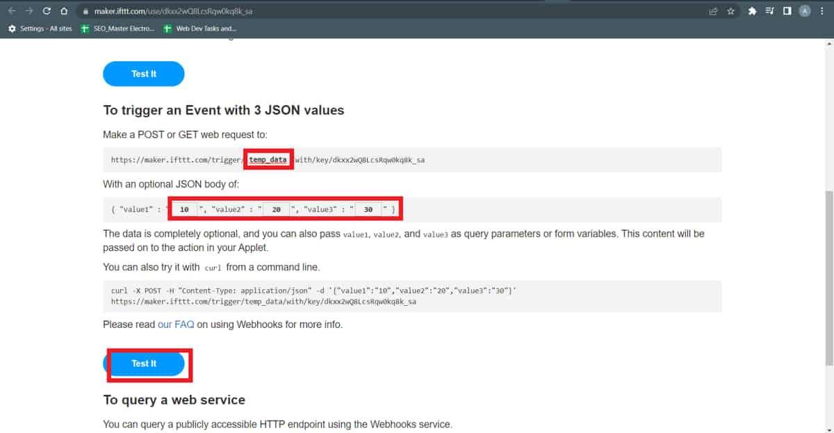 - Now ESP32 will communicate with the IFTTT Webhooks service to publish those readings on the spreadsheet.