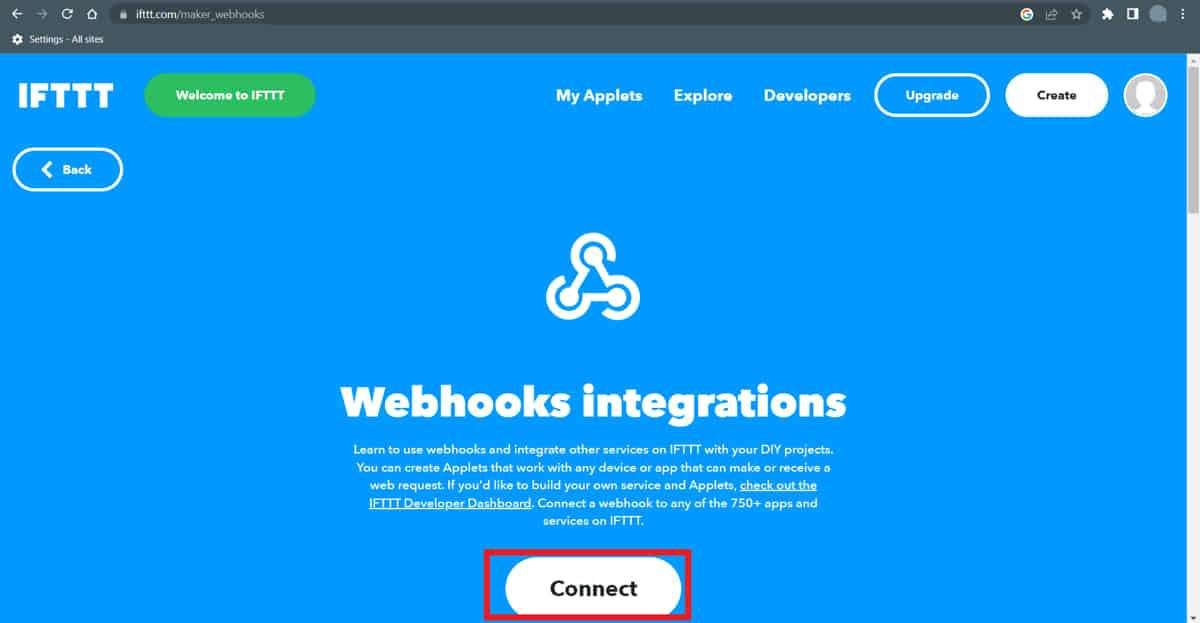 Now in the webhooks click on the connect button.