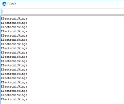 Serial.println("ElectronicWings"); /* print Electronic Wings at new line per second */