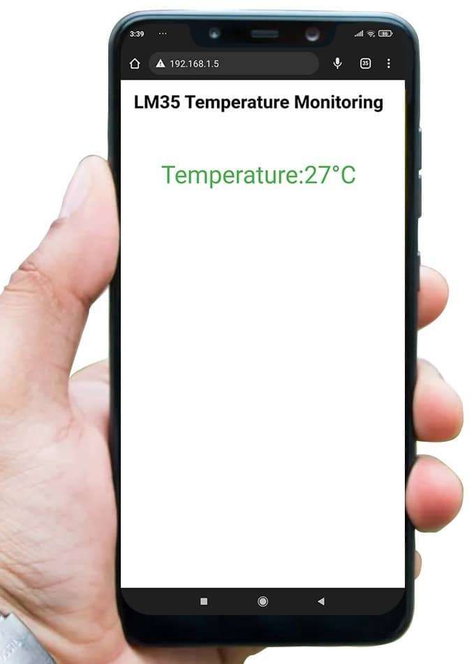 This is a code for the web page that shows the measured temperature using a LM35 temperature sensor and ESP32.