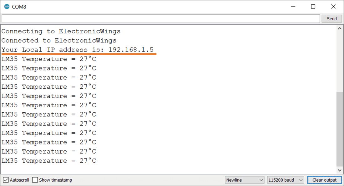 Serial.println(WiFi.localIP()); /*Print the Local IP*/
