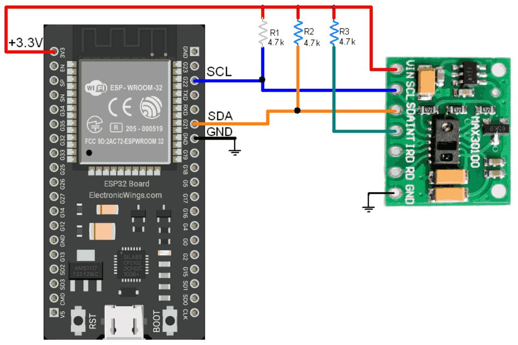 MAX30100 Hardware Connection with ESP32