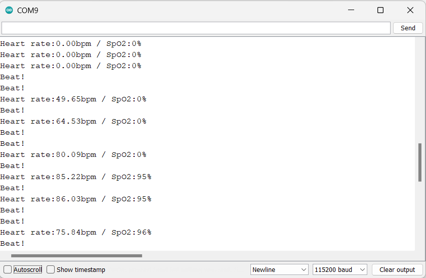 To find the heart rate (BPM) and Oxygen Saturation (SpO2) using MAX30100, we will use the I2C communication protocol and display the readings on the serial monitor of Arduino IDE.