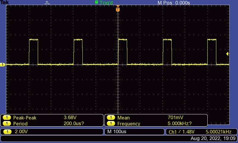 E.g. A pulse with a period of 10ms will remain ON (high) for 2ms. Therefore, the duty cycle will be