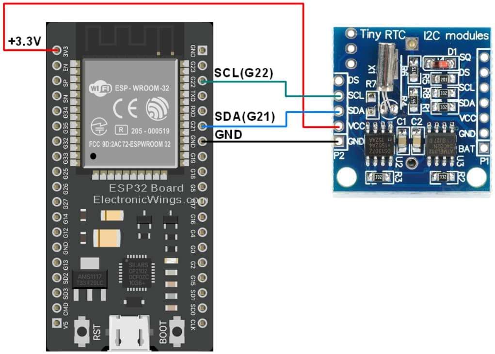 DS1307 RTC Hardware Connection with ESP32