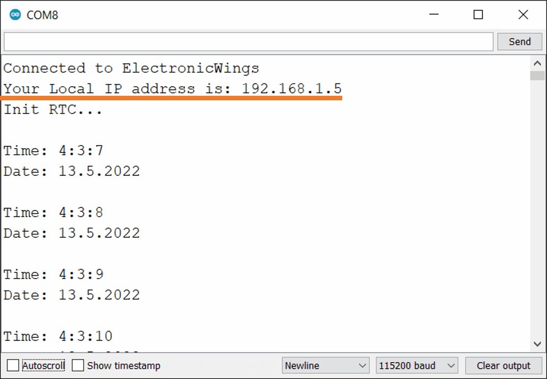 - If all are ok, then the web page will start the showing current time and date on the web server like in the below image.