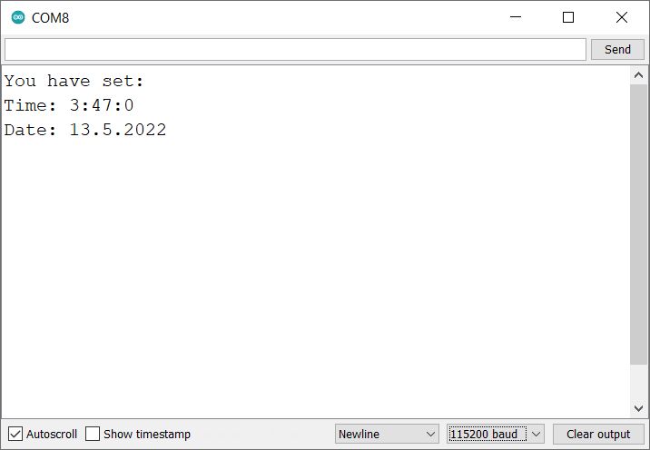 Then we will read the date and time from the RTC in the next example.
