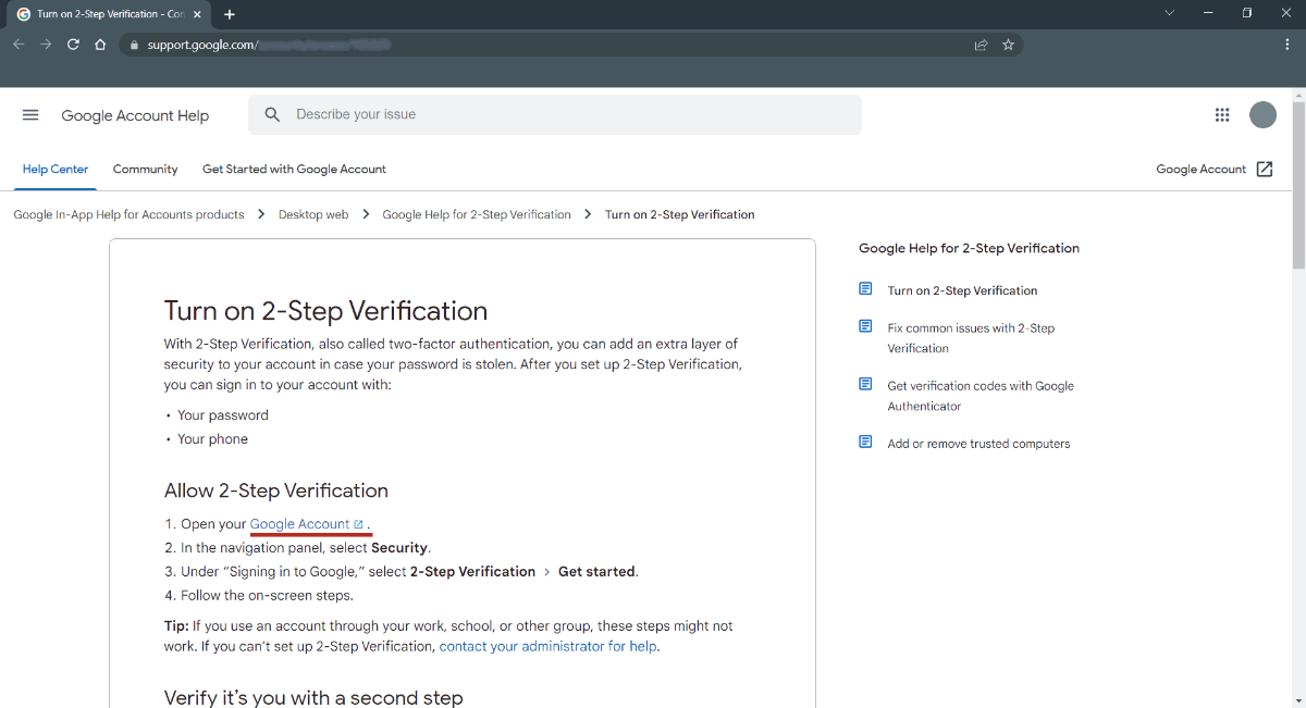 3. Scroll down and click on 2-Step verification