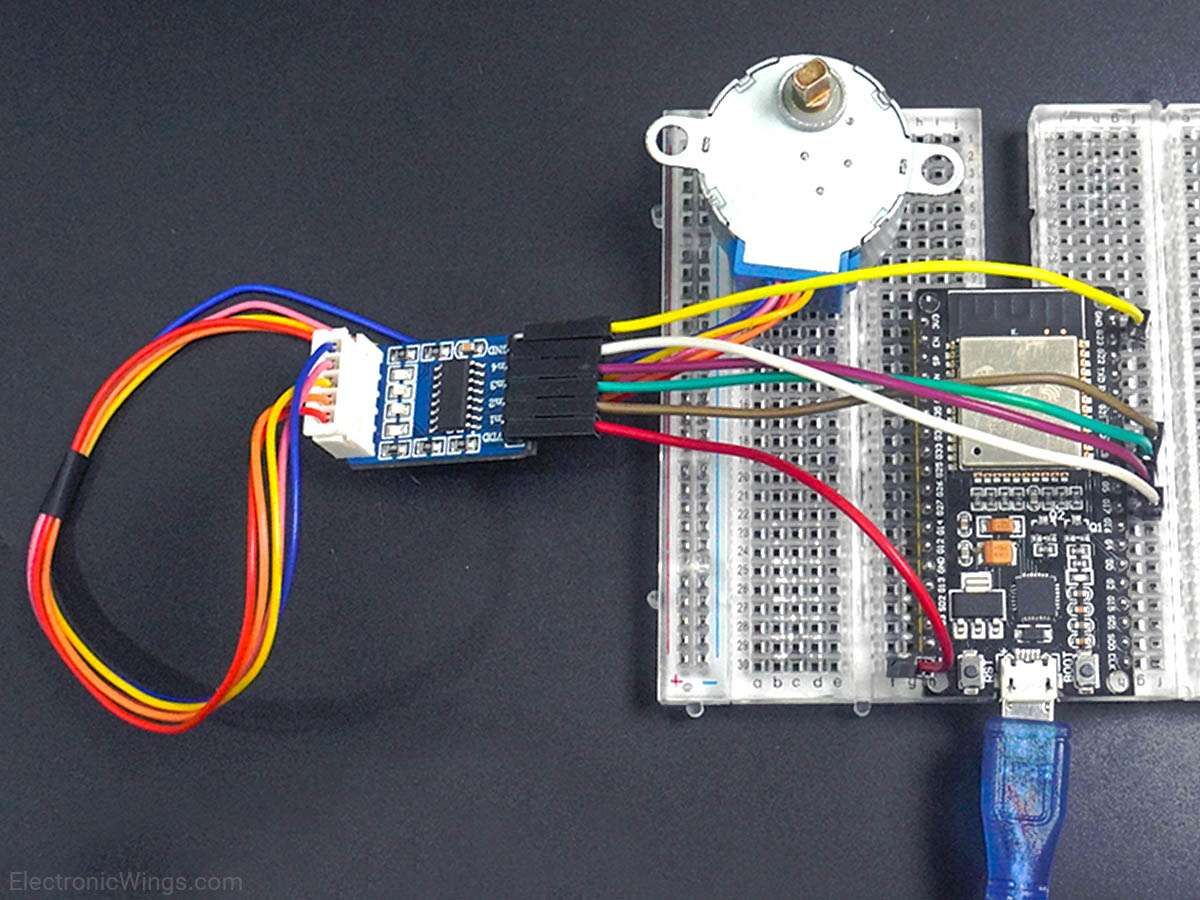 In our example we have used the 28BYJ-48 stepper motor, the order of the pins is IN1, IN3, IN2, IN4 but in your case, it might be a different sequence.