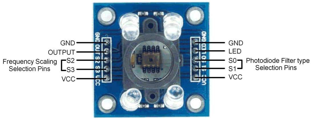 - Module is designed in such way a that 4 bright LEDs will light the object and reflections from that object will strike the TCS3200 Color Sensor IC to detect the color of an object.
