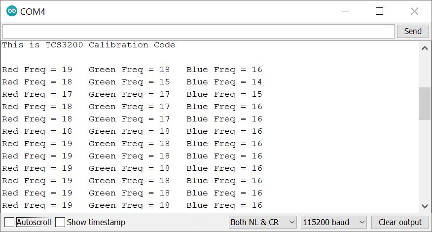 - Upload the below TCS3200 Calibration Code on your ESP32.