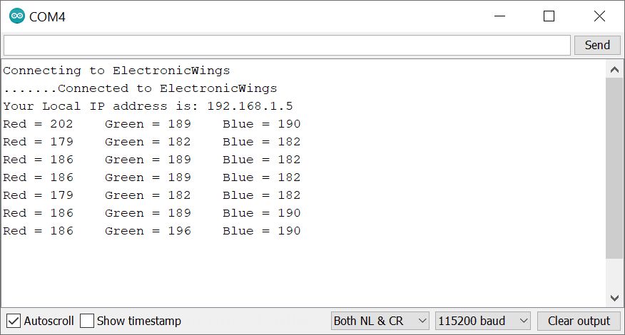- If all are ok, then the web page will start the showing current RGB values on the web server like in the below image.