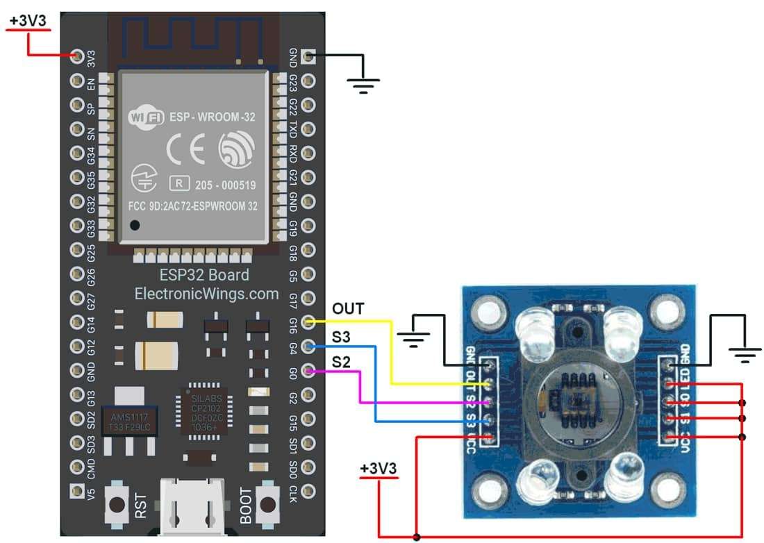 TCS3200 Color Sensor Hardware Connection with ESP32