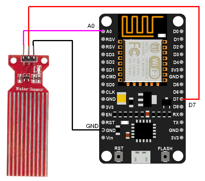 - The sensor gives output voltage proportional to the level of submerged it in the water.