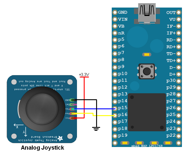 Connection Diagram of Analog joystick with ARM MBED (LPC1768)