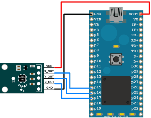 Connection Diagram of ADXL335 with ARM MBED (LPC1768)
