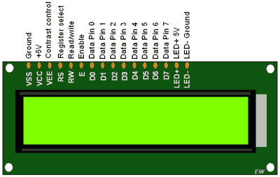 - LCD 16x2 is a 16-pin device that has 2 rows that can accommodate 16 characters each.