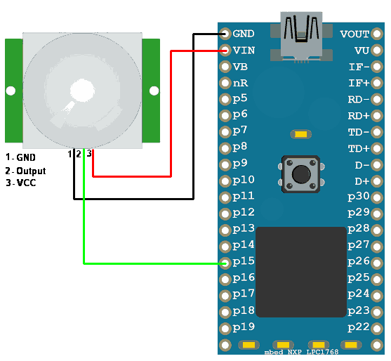 Connection Diagram of PIR with ARM MBED (LPC1768)