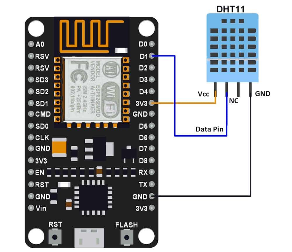 Connection Diagram of DHT11 with ESP8266 (Master Board)