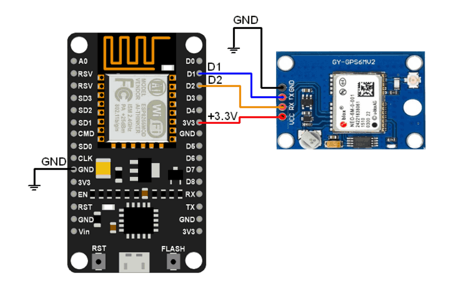 NEO-6M GPS Receiver Hardware Connection with NodeMCU
