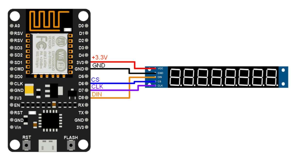 MAX7219 7-Segment Display Hardware Connection with NodeMCU