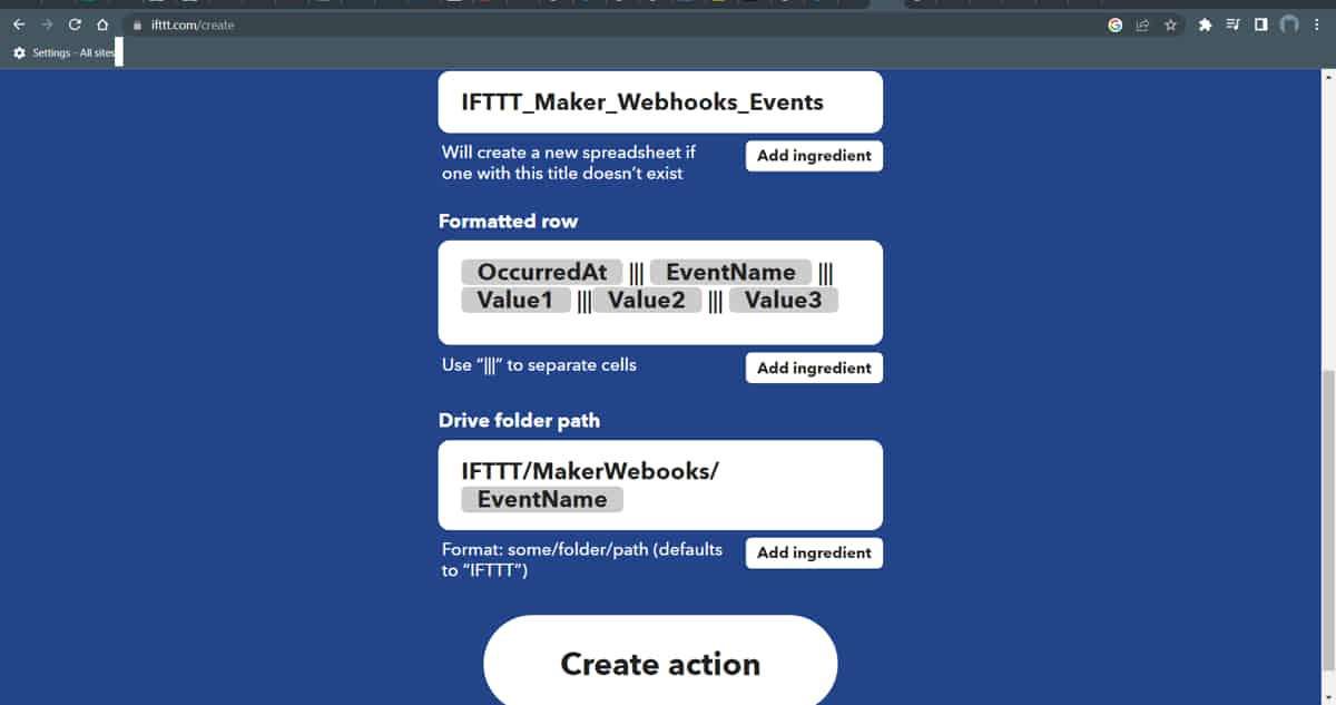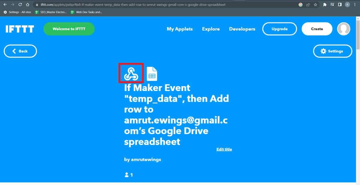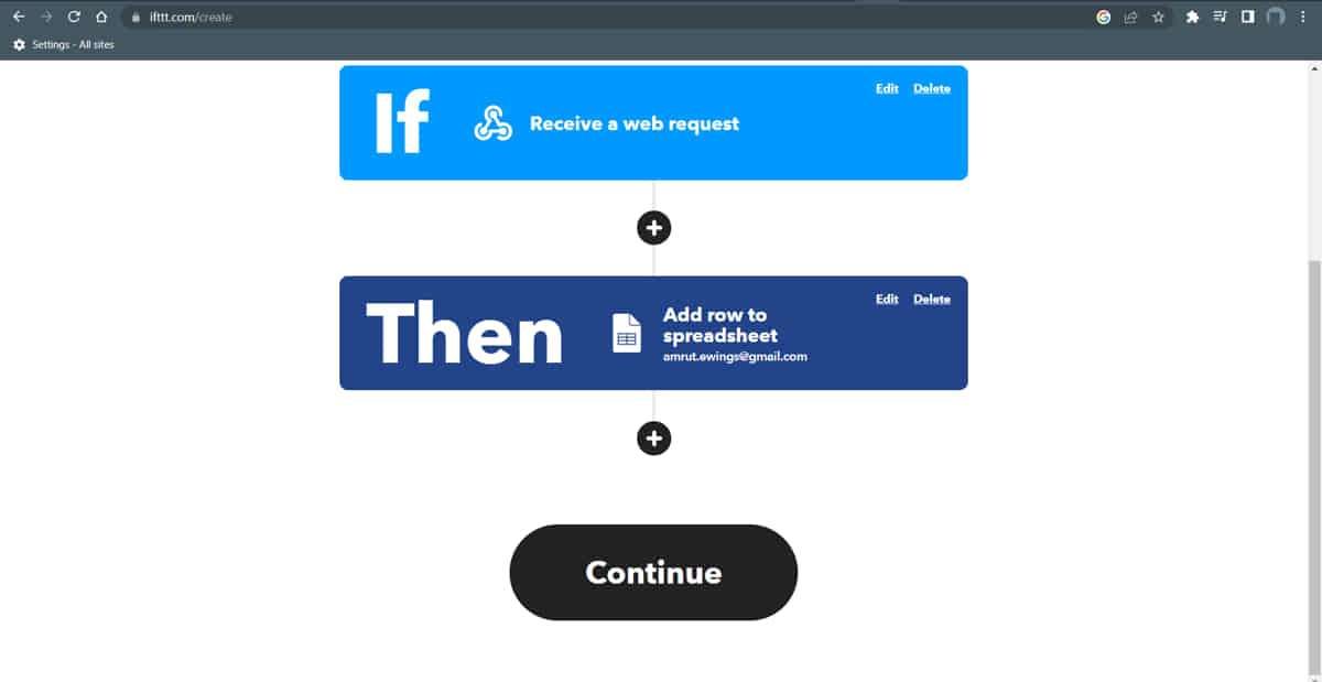 - Now nodemcu will communicate with the IFTTT Webhooks service to publish those readings on the spreadsheet.