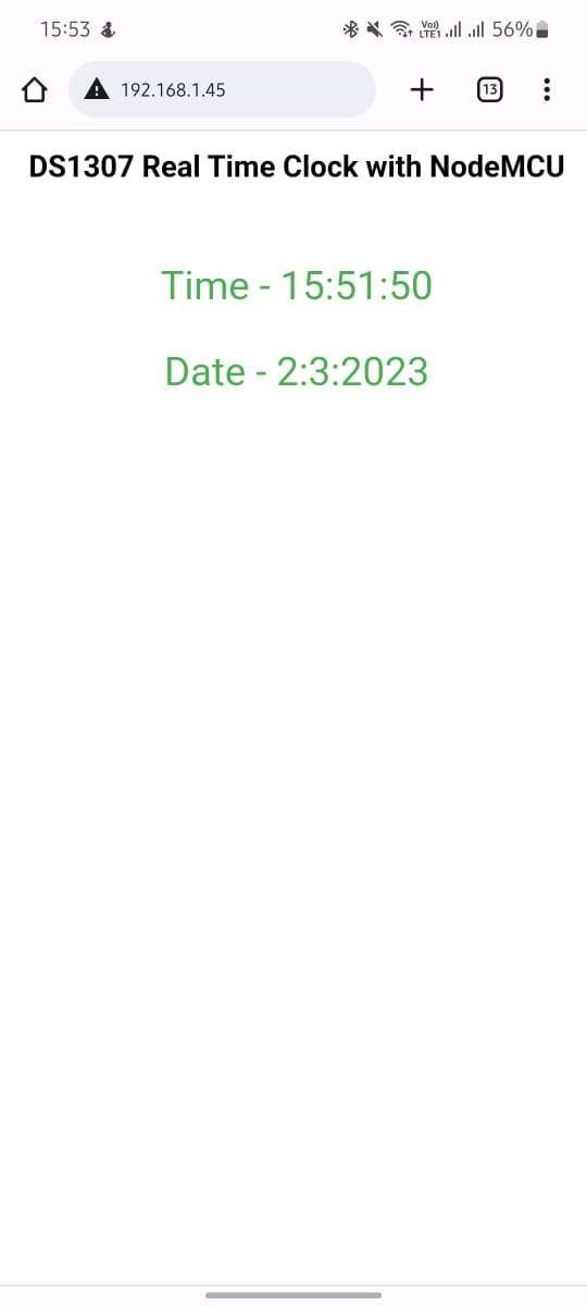 - If everything goes right, then you will see the webpage with the date and time from RTC.