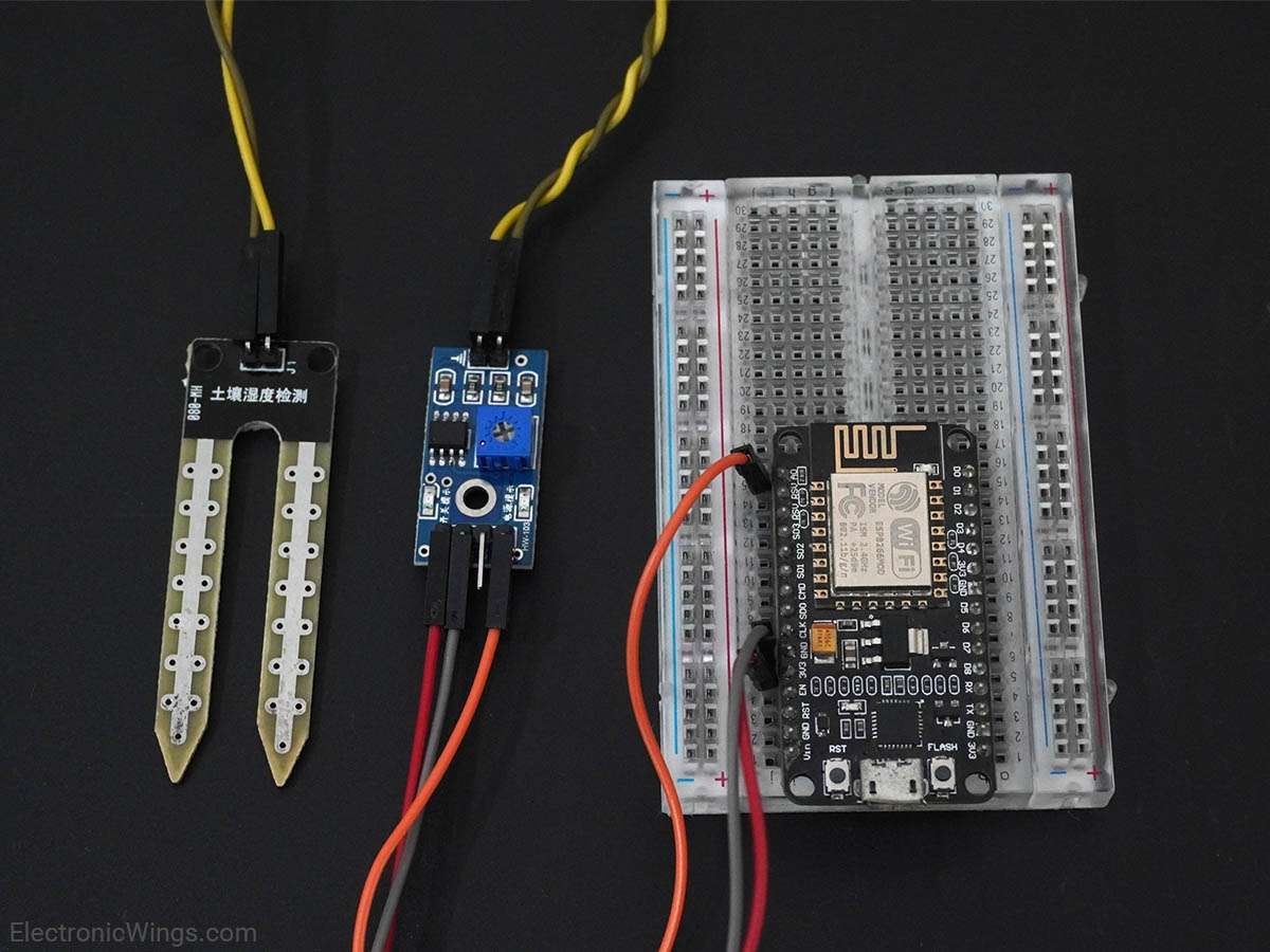 NodeMCU ADC can be used to measure analog voltage from the soil moisture sensor. To know about ADC of NodeMCU refer to NodeMCU ADC with ESPlorer IDE and NodeMCU ADC with Arduino IDE.