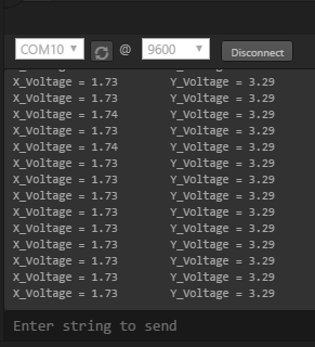 Displaying analog joystick voltages in X and Y directions on a serial monitoring software (ex. Tera Term, Real Term etc.)