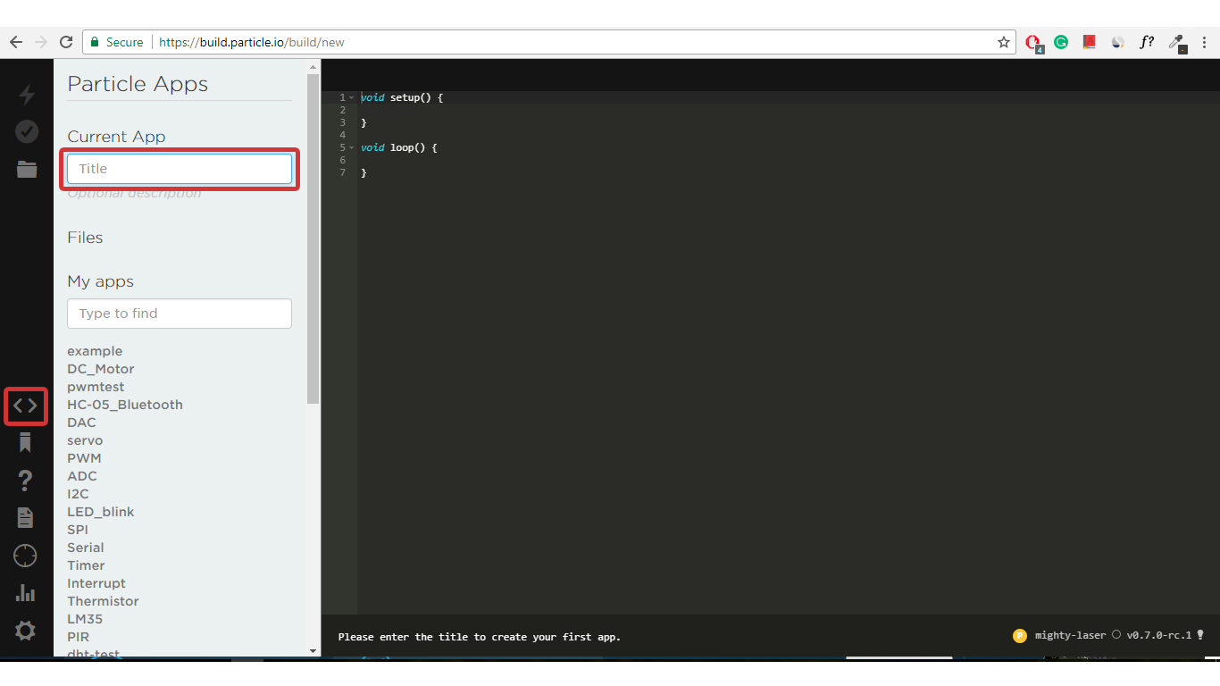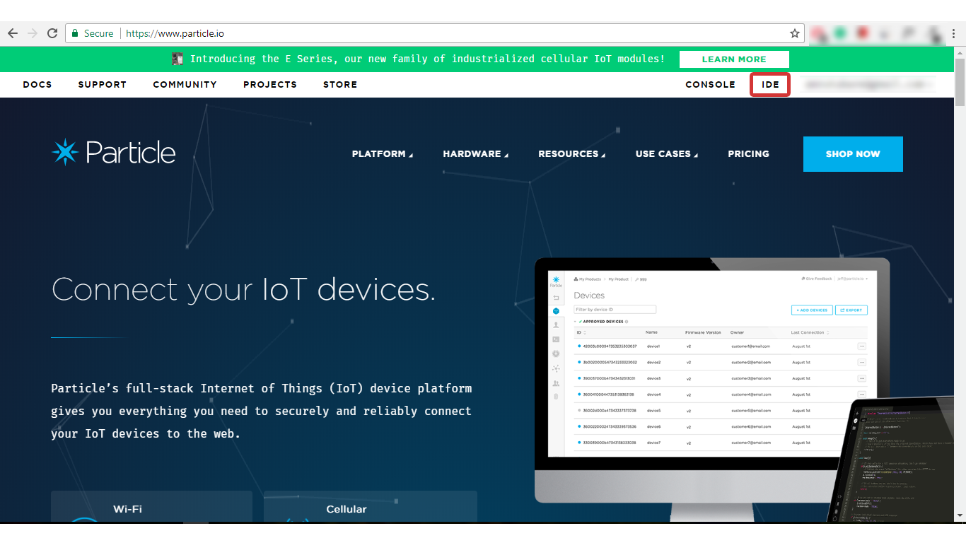 - Open the Particle’s home and click on IDE.