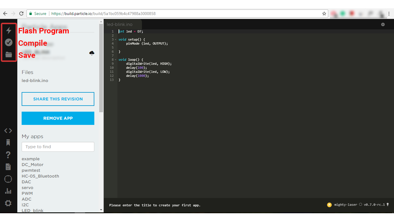 Now, Photon is connected to Wi-Fi with having active Internet. So, let’s just blink a Photon’s on-board LED using Web IDE.