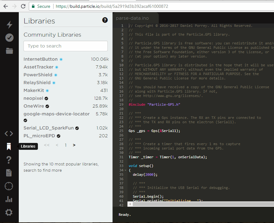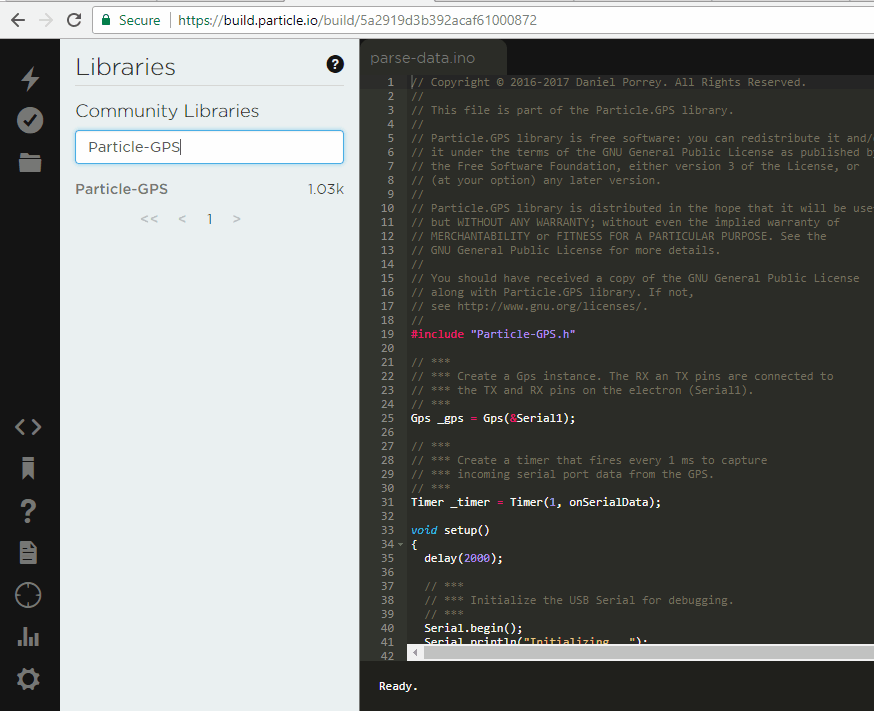 Here, we will be usedTinyGPSPlus library from Particle Photon.
