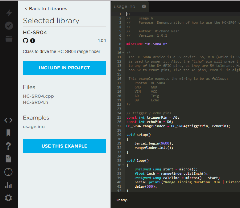 3. Then click on example of usage.ino and open it and flash on your photon board.