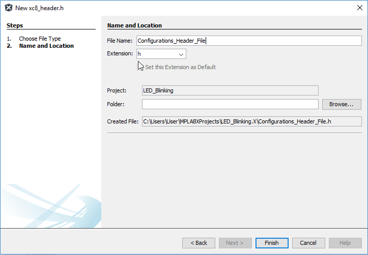 - Name Header File and click on Finish