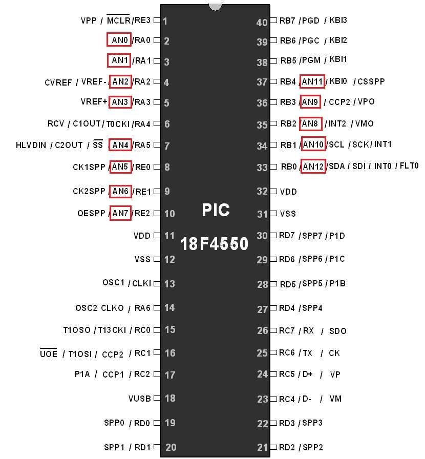PIC18F4550 ADC Pins