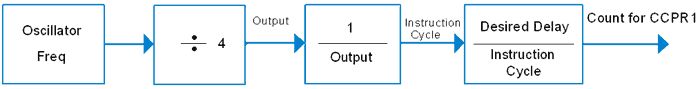 The following figure illustrates steps to calculate count for the desired delay which to be load into CCPR1 Register.